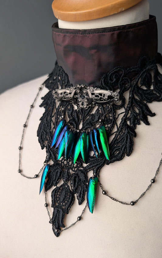 Elegant Gothic Collar Bib, Taffeta Lace Choker With Beetle Wings