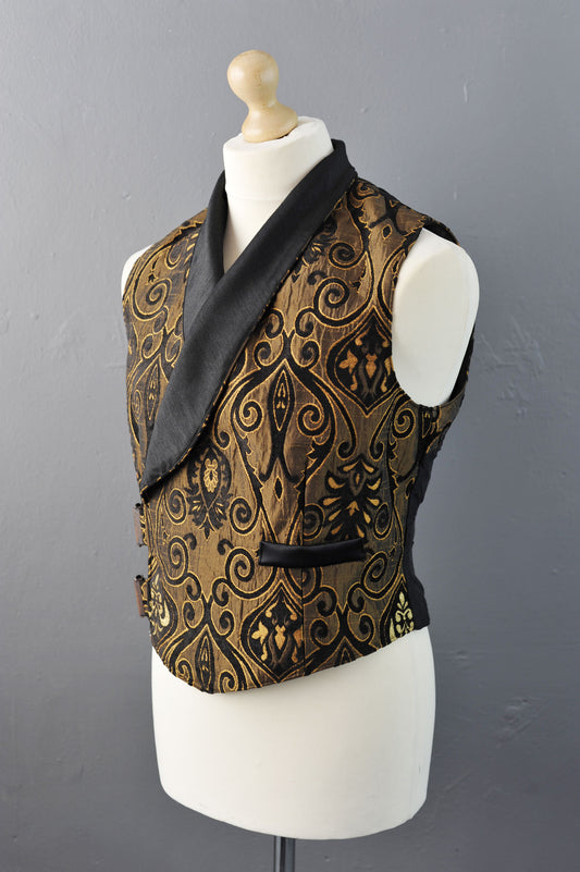Mens Steampunk Double Breasted Waistcoat in Bronze Brocade