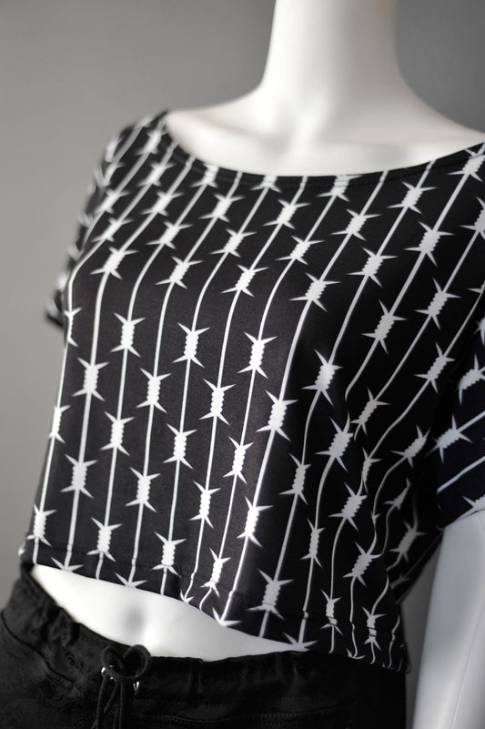 Oversized Crop Top with Barbed Wire Print, Unisex Gothic Tshirt