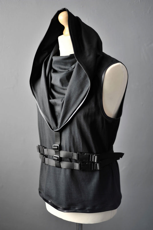 Mens Futuristic Cotton Tank, Mens Cyber Hooded Cowl Top