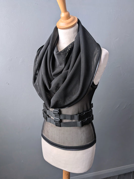 Womens Cyber Futuristic Mesh Tank, Hooded Cowl Net Top